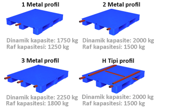 Üzeri Delikli Profil Yuvalı Palet Dinamik kapasite: 1500 kg Statik kapasite: 5000 kg Raf taşıma kapasitesi: 1000 kg Renk: Gri