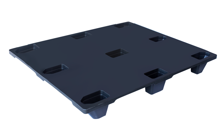 Üstü delikli içiçe giren palet Dinamik kapasite: 400 kg Statik kapasite: 1500 kg Ağırlığı: 4,70 kg (± %3) Renk: Siyah